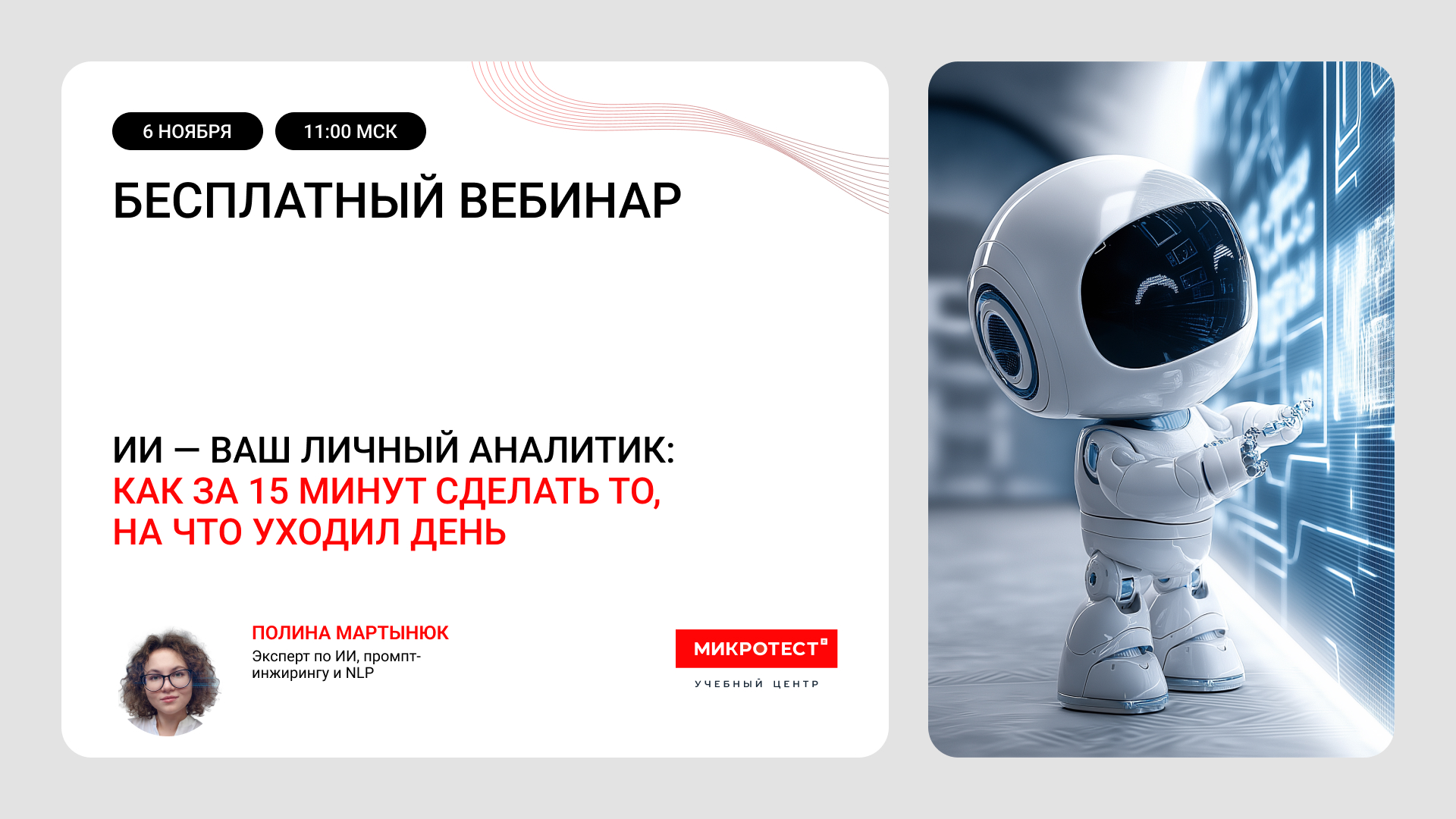 На бесплатном вебинаре вы узнаете, как современные ИИ-инструменты помогают работать быстрее, принимать решения увереннее и освобождать время для действительно важных задач.