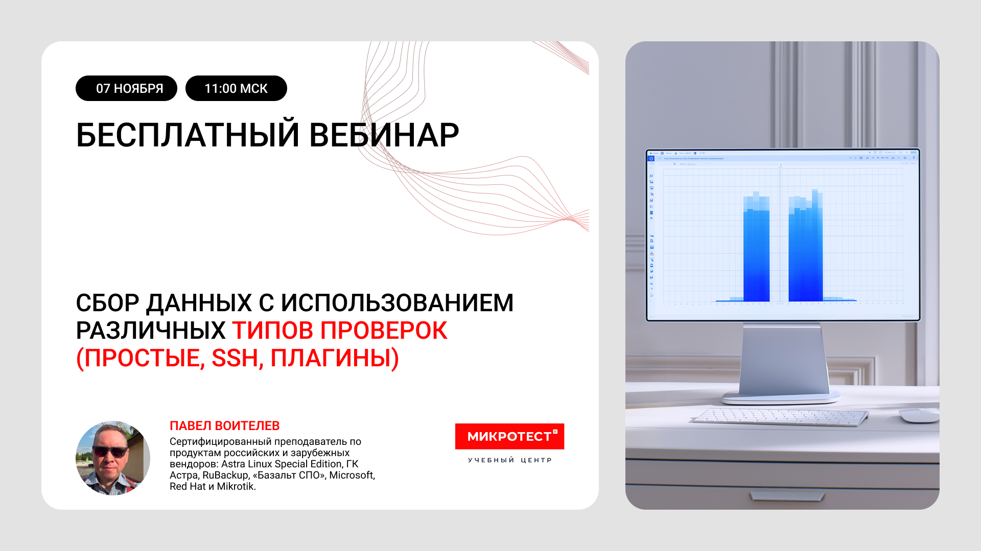 На вебинаре будет рассмотрено, как в системе мониторинга Zabbix осуществляется сбор данных с помощью различных типов проверок: