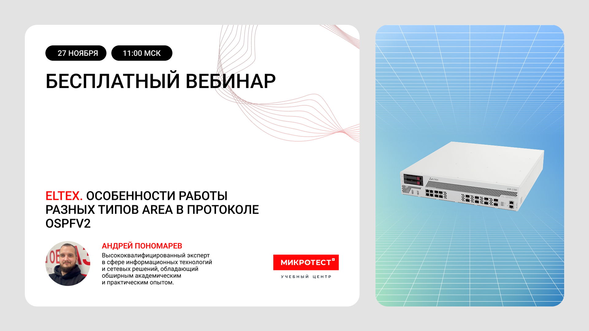 Вебинар проводит Андрей Пономарев — высококвалифицированный эксперт в сфере информационных технологий и сетевых решений, обладающий обширным академическим и практическим опытом.